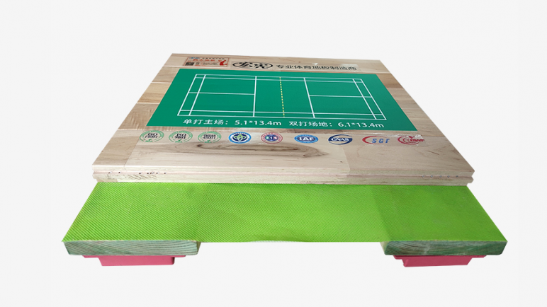 懸浮式單層板式結構是一種具有高舒適性性、環保經濟的一款運動木地板系統。采用板式龍骨層架空,適用于羽毛球場地,健身房,乒乓球場地。特別是場地標高不夠的運動場所。整體運動木地板高度5厘米。