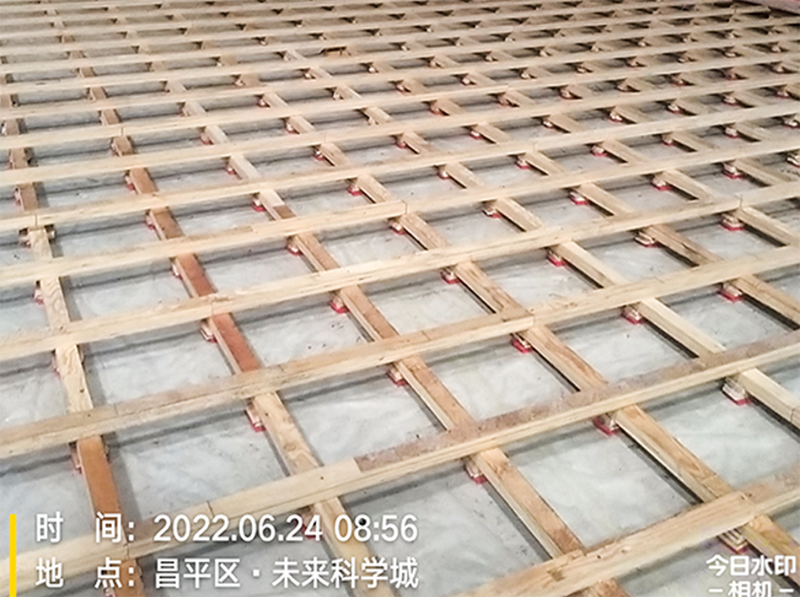 舞蹈室共1000平米,采用單層龍骨結構(懸浮式)楓樺木A級面板,于6月20日進場;