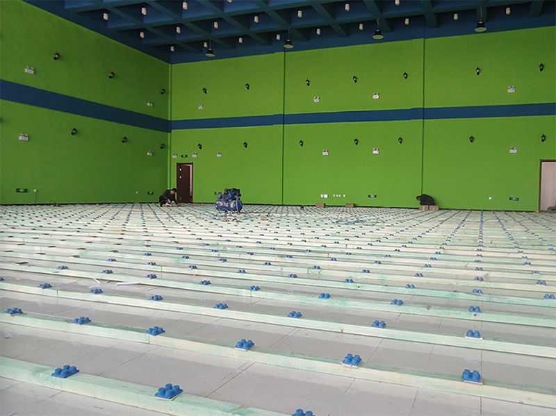 牡丹江市法院羽毛球館木地板鋪裝完工!場館共450平米,采用運動木地板上加鋪一層地膠的方案,運動木地板使用楓樺木B級(加黃)色差板,面板具雖有色差,但運動性能和楓樺木A級面板相差無幾,是羽毛球館面板的優質選擇。底層采用雙層龍骨結構,使用兩層膠墊,減震效果更好,結構更加穩固,場館木地板鋪設完工后一次性驗收通過,得到其單位領導的一致認可。