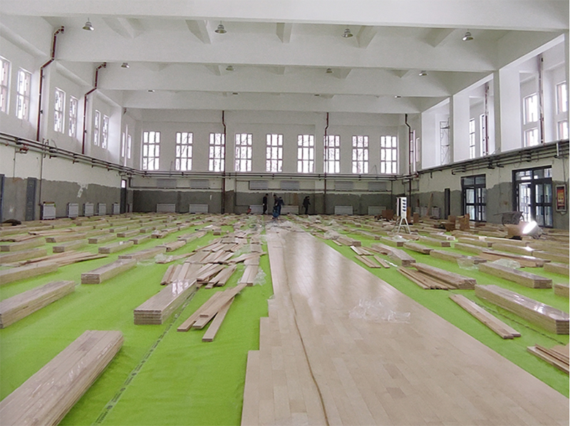 新疆石河子小學體育館木地板鋪設完美竣工!場館共1300平米,采用楓樺木A級面板,面板光潔紋路清晰無色差,采用雙層龍骨結構使球體回彈性更高,運動性能俱佳。在場館墻面的上方都有玻璃,使學生們在運動中不僅自然光線更好,而且不刺眼。