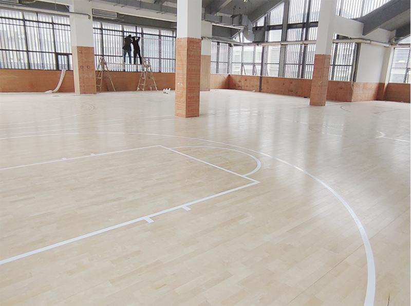 吾畏籃球館屬于個人營業場館,場館共500平米,全部采用楓樺木A級面板,場館采用透明漆直接呈現面板的真實顏色,給人很好的視覺放松,采用楓樺木A級單層龍骨結構,在標高達到場館場地要求的前提下,又保證了球體的回彈性,使球員們有很好的運動體驗。館主反應場地剛驗收成功,就已經吸引了一批運動員們來打球啦。