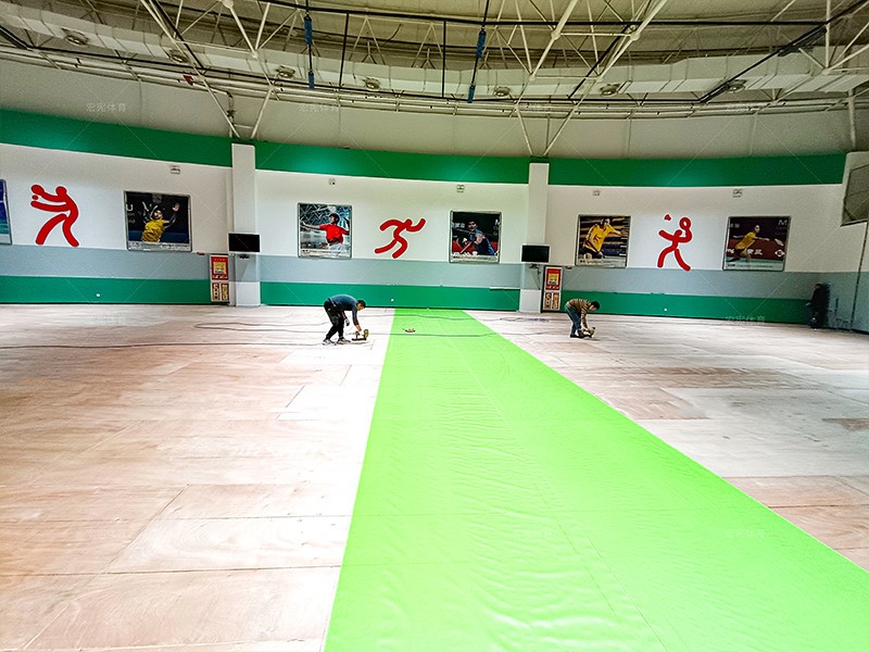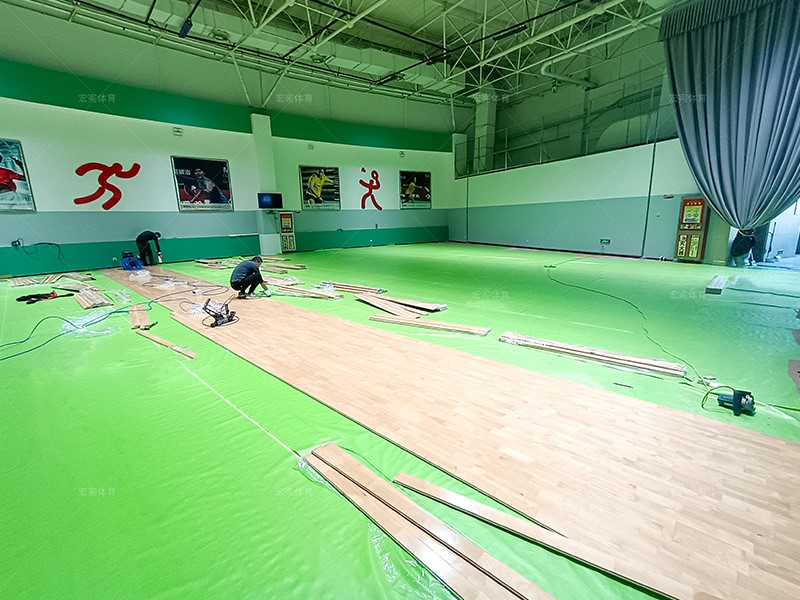 新疆移動公司羽毛球館施工中 華山中學籃球館木地板施工中