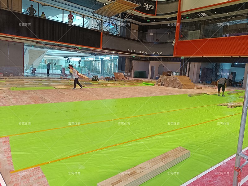 煙臺吾悅廣場森林空間籃球館木地板完工